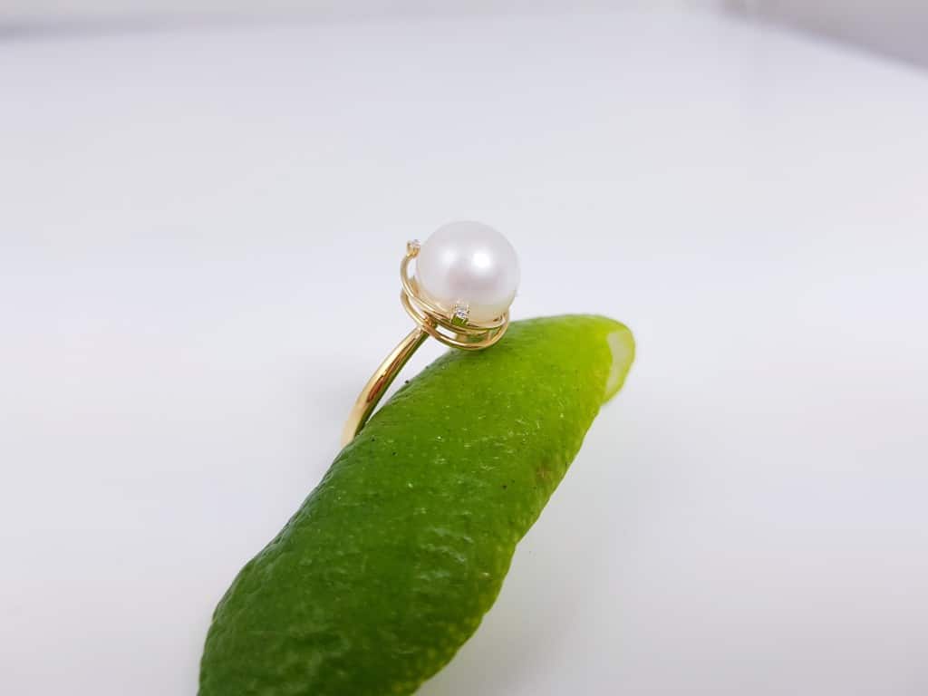 18k geelgouden ring met echte zoetwaterparel en echte diamanten.