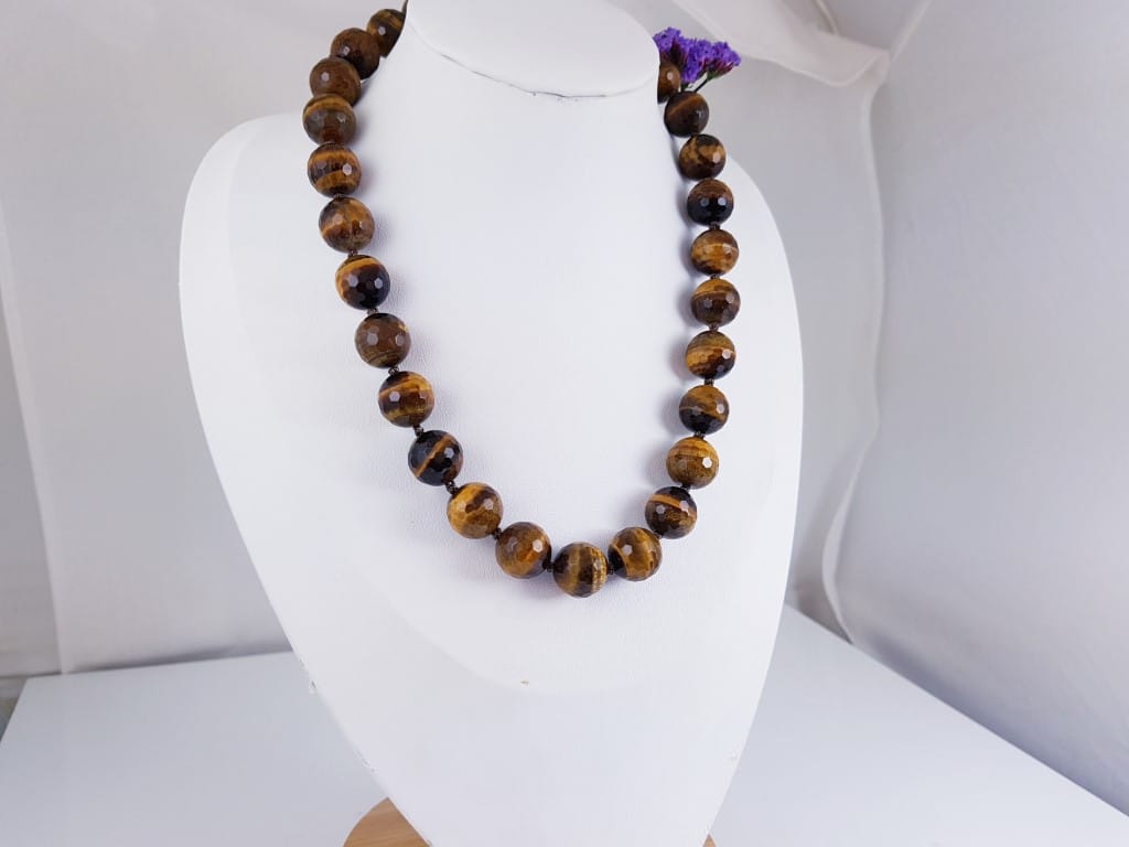 Halsketting van gefaceteerde, geslepen, tijgeroog.
