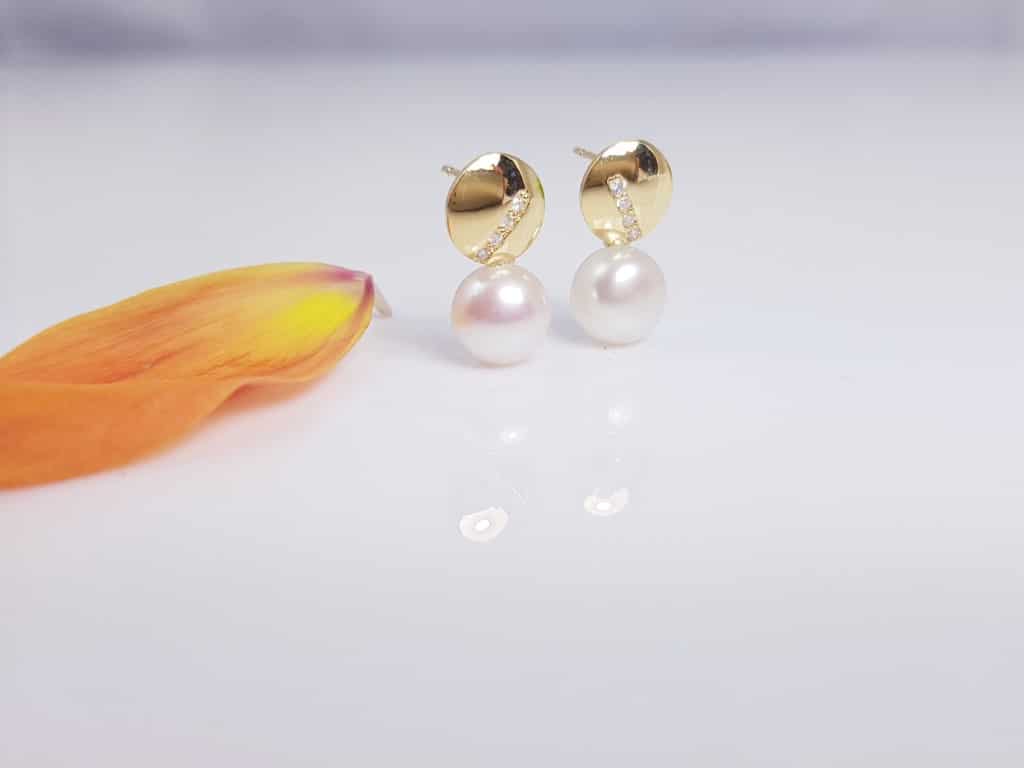 Oorbellen van 18k goud met echte parels en echte diamanten.